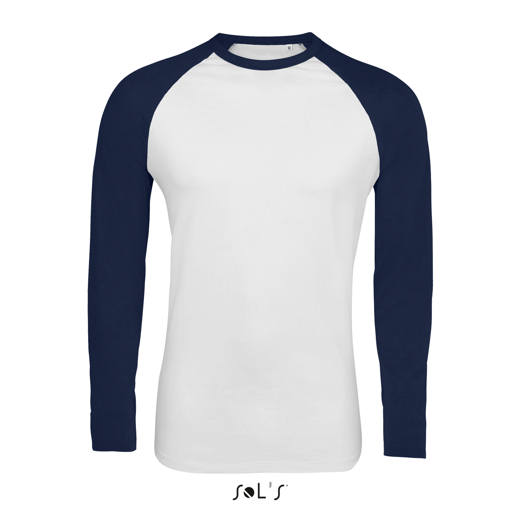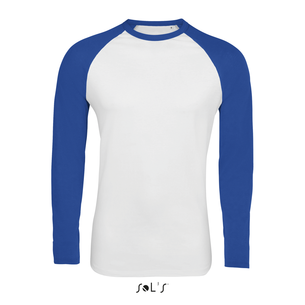 Camiseta bicolor con mangas largas raglán punto liso de 150 gramos. Acabado de canalé con elastano en el cuello.