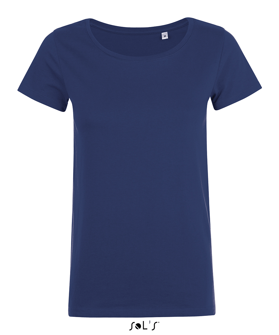 Acabado con tacto suave. Cuello acanalado. Escote redondo femenino. Tira en el cuello. Costuras laterales.