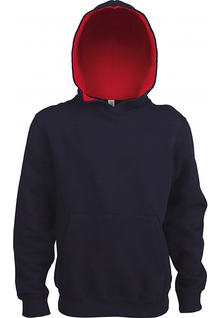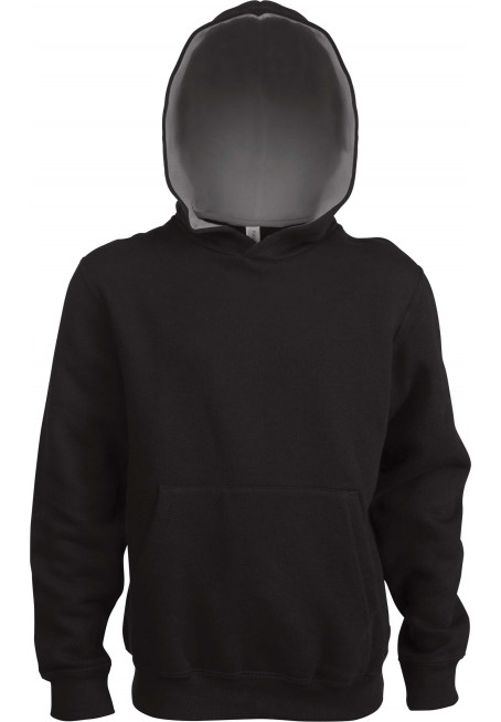 Felpa perchada. Salida auriculares en bolsillo canguro y cuello. Acabado de canalé en puños y bajo de la prenda. Capucha con forro contrastado.